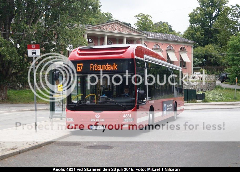 Idag dök dock minst tre tolvmetersvagnar upp på linjen (4804, 4820 & 4831). Bilden visar Keolis 4831 vid ändhållplats Skansen.