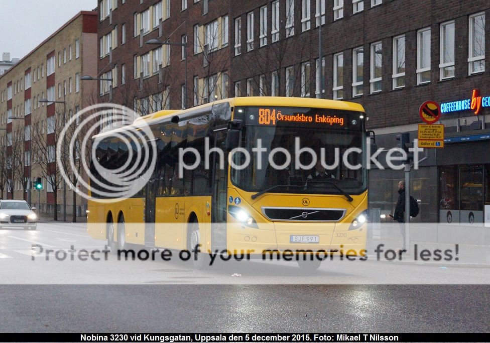 Här kommer ett av Nobina Uppsalas senaste nytillskott i 32xx-serien, vagn 3230 som just lämnat Uppsala C mot Enköping.