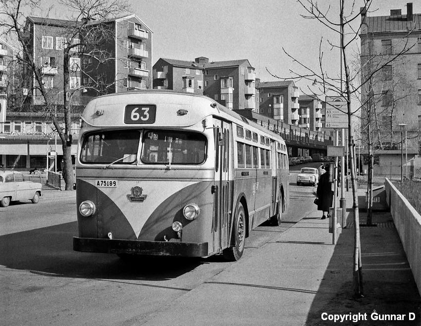 Ännu några dagar går det att åka linje 63 från Slussplan till Sjöbjörnsvägen som här 24 mars 1964.