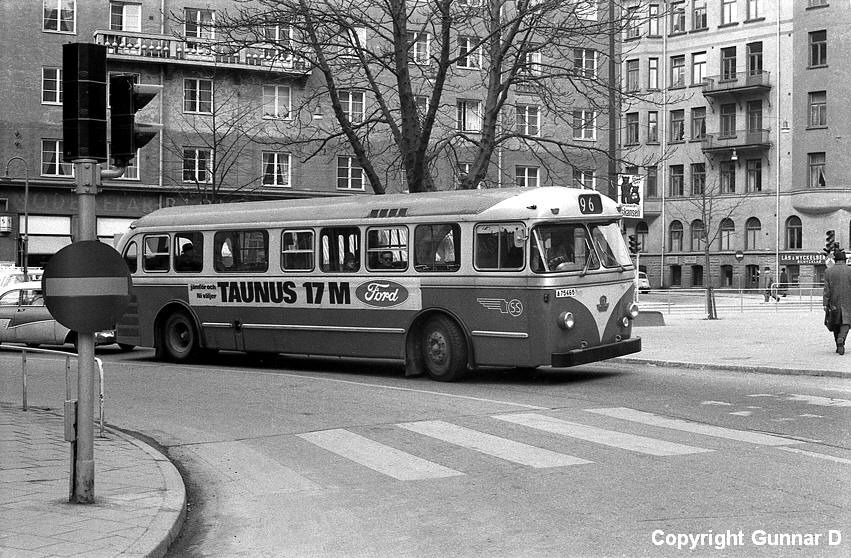 Den andra bildens H24 på linje 96 gör reklam för Ford Taunus 17M och passande nog står en äldre sådan närmast bakom i kö.