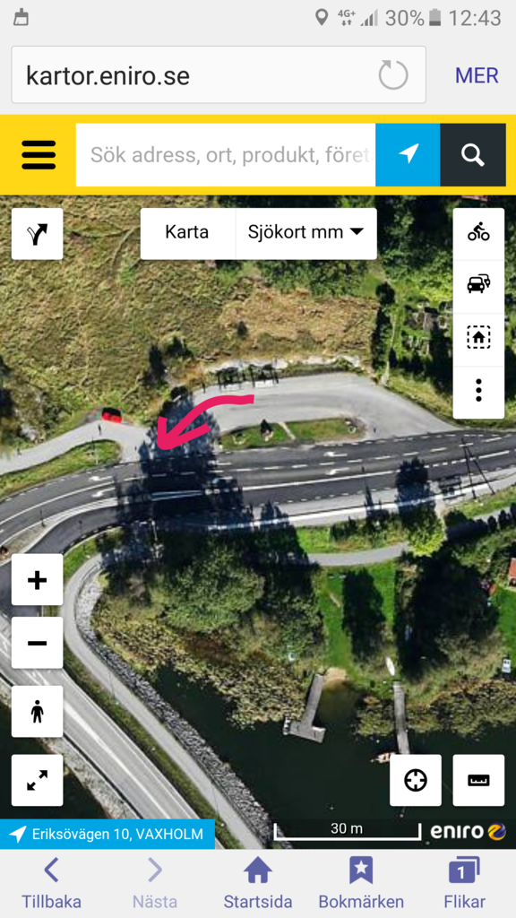 Och vad gäller när bussfilen går över i en utfart enligt rosa pil? Vem har väjningsplikt?