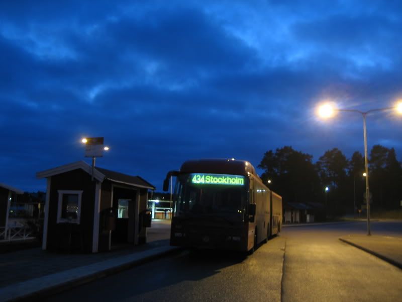 Vindöga har just ankommit Stavsnäs och lämnat över två vilsna själar till anslutande 434 som Börje hade nöjet att köra. Eller rättare sagt; nöjet började efter rast då jag bytte bort B9S mot en riktig buss.