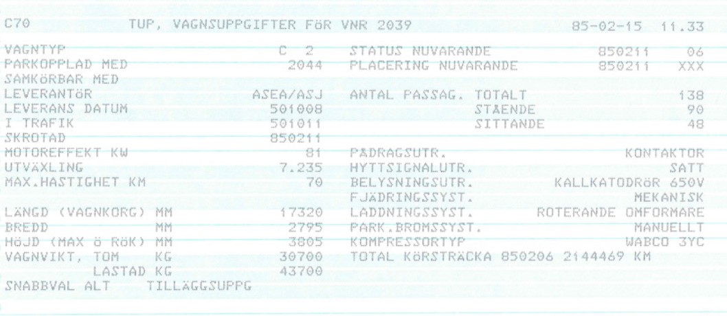 För 40 år sedan idag slog jag ut denna C70-rapport från SL's dåvarande system TUP, med anledning av att C2 2039 och parvagnen 2044 precis fått officiell skrotning 1985-02-11.