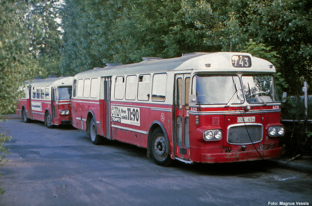 Tack! Jag var ju Büssingförare i Hornsberg sedan hösten -71, och fick nu växelvagnsutbildning i Huddinge. Hade ett par tjänster med polis-CF, minns nu inte var de var garagerade. Åtminstone en kollega fick vara med om en eskorterad blåljuskörning pga. någon demonstrationsunge.
