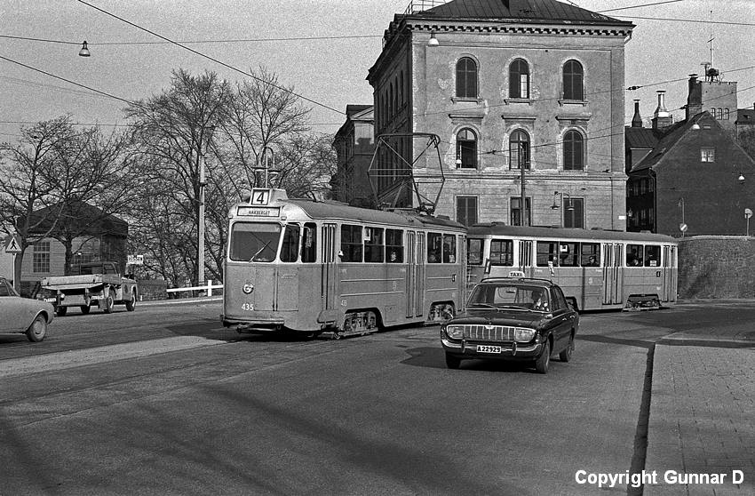 Som sommarextra konduktör hade fotografen förmånen att få tjänstgöra på denna vagn en eftermiddag/kväll nära slutet för sista resterna av vårt fina spårvägstrafiknät, strax innan högertrafiken "slog till". Hade väl tagit ganska många bilder allaredan med min gammalmodiga kamera, men den här vinkeln återstod.