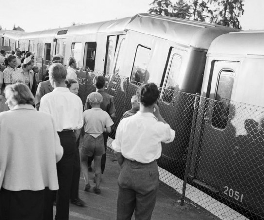 Vykortet bör vara taget perioden oktober 1950 - april 1951, för visst ser passagerarna lite klädda för svalare väder. Eller kan det vara år 1952? När gick sista två-vagnarståget i ordinarie utsättning? När togs körtråden för spårvagnarna ned? Bärlinorna var kvar till 1953.