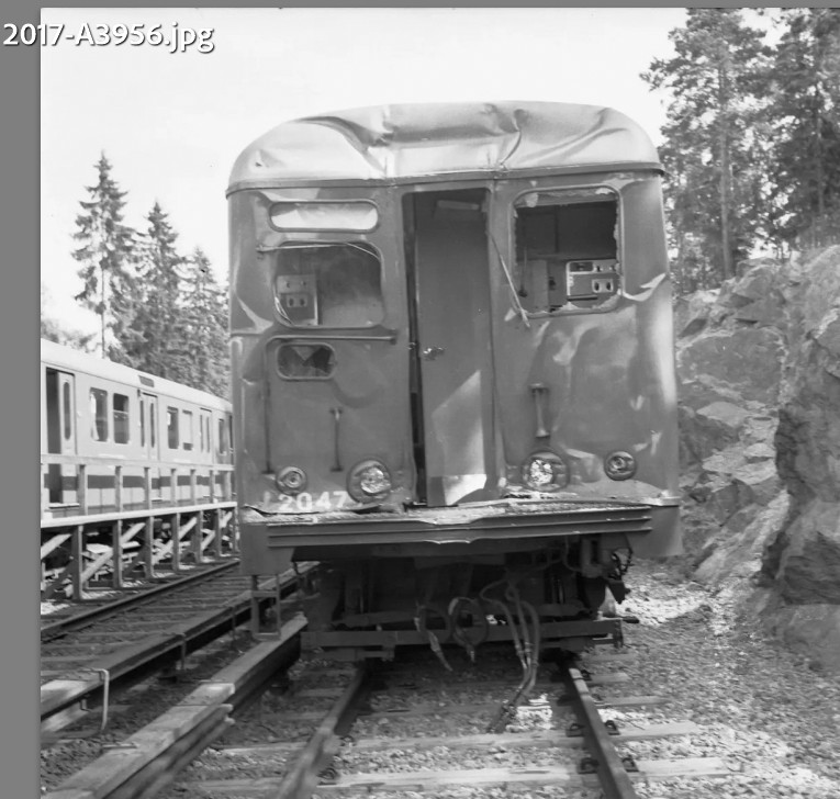 Den olyckan minns nog inte många idag. R1 för 2047 försköts väl då. C2 2055 blev knäckt ovanför boggicentrum men reparerades väl ändå.