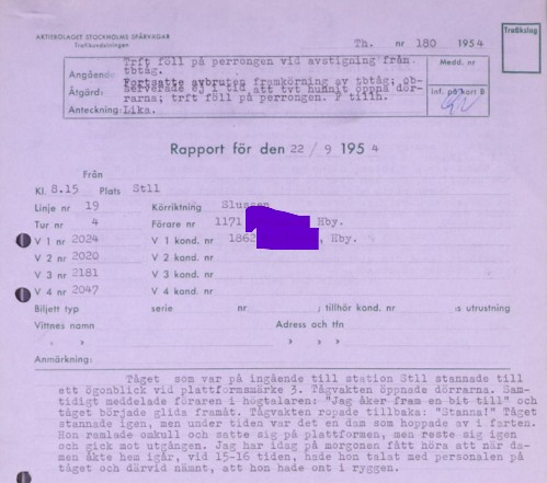 Det tål nog att gås igenom i särskild ordning. Trafikhändelseutredningen finns djupare ned i arkivet. Det förekommer spegelvända bilder.