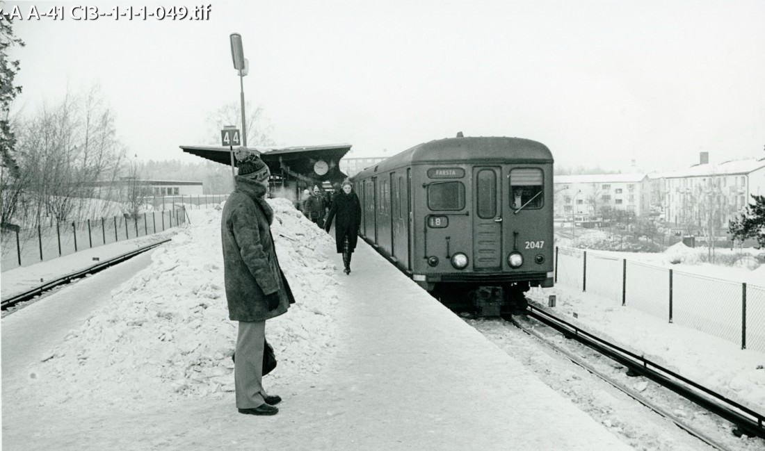 Ur arkivet, en typisk sen 1970-tals bild på C2 2047. Brommaplan söderut. Är det en H58:a eller H1:a borta vid gamla bussterminalen?