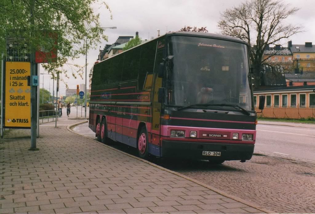 Enligt mina noteringar importerades bussen 2000 och första svenska ägare var SÖ-Buss. Bussen är enligt fordonsregistret fortfarande reggad på SÖ-Buss och de är enda svenska ägare. Avställd sedan 2006-07-01. Scania K113TL E Auwärter Eurostar. Jag kan inte se vad det står mer än Johnsons i övre delen av framrutan.