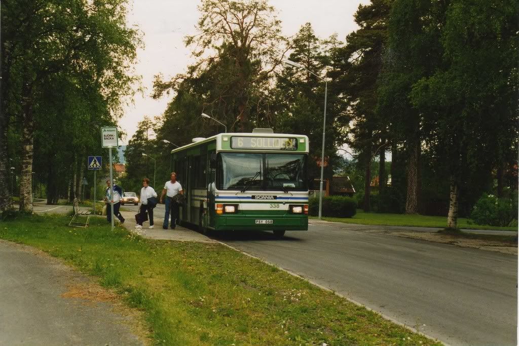 Är nog förmodligen en augusti dag 1995 då kanske, grönfärgen på träden är ganska mörk. Det var ju 1 januari-96 som Swebus tog över Östersundstrafiken och lade till en 5:a före på inv. nr och bytte lite dekaler på bussarna. De införskaffade dock få bussar efter JB- tiden som var betydligt bättre på att hålla med de senaste bussarna .